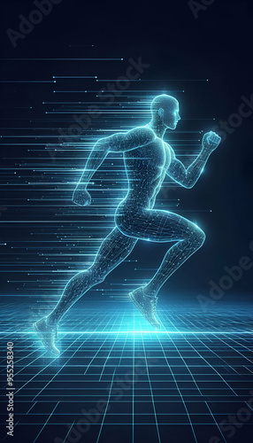 abstract neon blue man running