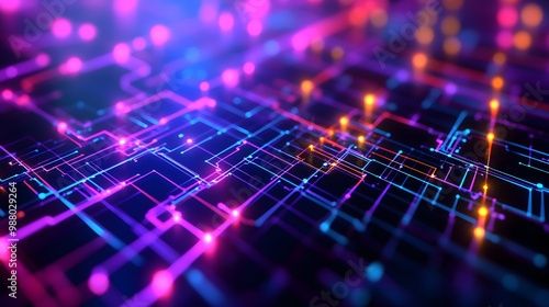 abstract, neon, circuit, board, line, node, glowing, technology, digital, network, connection, futuristic, modern, electronic, wire, grid, pattern, background, design, graphic, light, bright, colourful, blue, pink, orange, purple, dark, black, three-dimensional, render, illustration, texture, science, datum, cyberspace, future, innovation, communication, concept, space, wireframe, structure, style