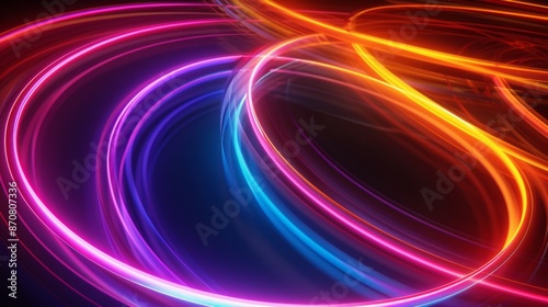 Abstract Neon Light Trails in Vibrant Colors on a Dark Background