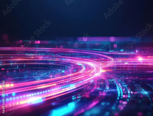Abstract neon light trails, sleek curves, dark futuristic background, glowing accents, modern energy