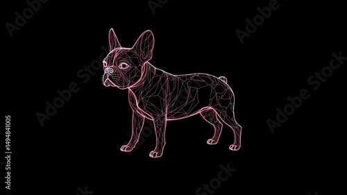 Abstract Neon Rose Dog Silhouette