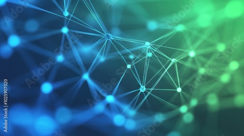 Abstract network illustration with interconnected nodes and lines in blue and green hues.