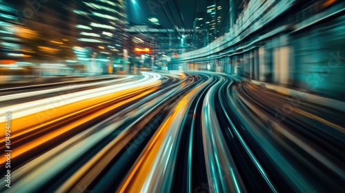 city landscape, night, light, trail, city, urban, abstract, speed, motion, blur, dark, blue, teal, yellow, orange, street, concrete, building, modern, futuristic, dynamic, vibrant, energy, flow, curve, line, perspective, texture, background, graphic, design