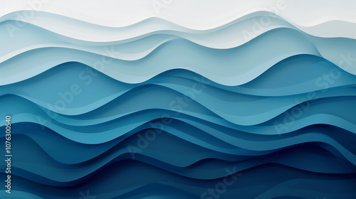Abstract Ocean Waves in Gradient Blue and White Tones