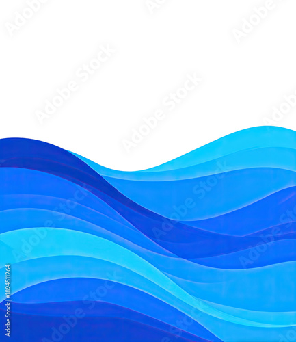 Abstract ocean waves with multiple layers of varying shades of blue, rising in the image