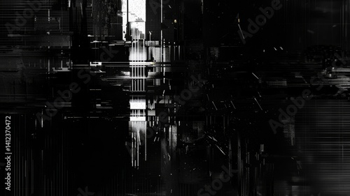 Abstract of complex glitch with pixel effect in dark background use shading and monochrome to express mysterious design or complexity through tiny object convey sense of horror digital scene. AIG53.