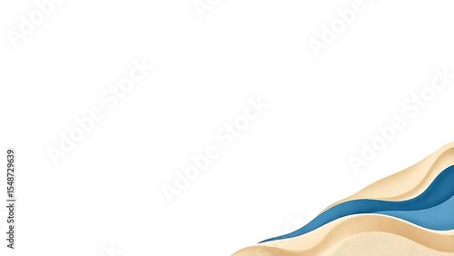 Abstract Paper Cut Art Elegant Beige and Blue Waves, Modern Design Element, Background Texture