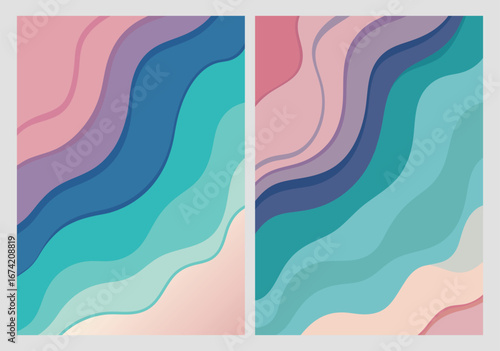 abstract, background, layered, wavy, curve, pastel, colours, gradient, pink, blue, purple, teal, soft, smooth, modern, elegant, creative, design, vector, illustration, graphic, texture, template, banner, flier, poster, card, cover, website, presentation, art, decorative, stylish, trendy, contemporary, surface, wallpaper, digital artwork, 2, set, collection