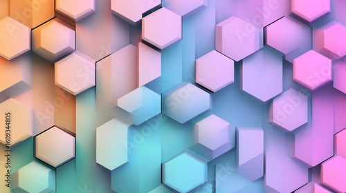 Abstract Pastel Hexagon Background, Geometric 3D Rendering Design