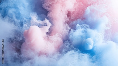 Abstract pastel pink and blue swirling smoke clouds