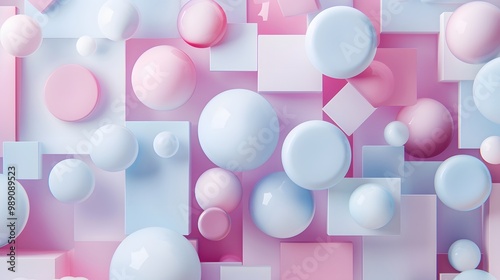 Abstract Pastel Shapes Background - Pink & Blue 3D Design
