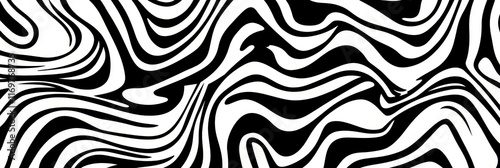 Abstract pattern, black and white stripes, organic curves, zebra-like texture, psychedelic swirls, optical illusion, fluid lines, wavy contours, hypnotic design, high contrast, seamless repeating patt