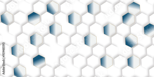 Abstract pattern with hexagonal white and gray technology line paper background. Hexagonal 3d vector grid tile and mosaic structure simple style hexagonal graphic concept. Futuristic surface design.