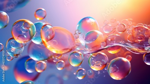 Abstract pc desktop wallpaper background with flying bubbles on a colorful background,