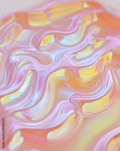 abstract, shimmering, iridescent, hue, flowing, wavy, pattern, texture, gradient, colourful, liquid, holographic, opalescent, smooth, pastel, modern, elegant, bright, pink, orange, yellow, blue, purple, glossy