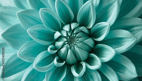 Abstract Petal Bloom in Teal Hues, Delicate Textures and Symmetric Form.