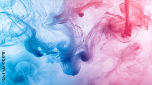 Abstract pink and blue ink swirling in water