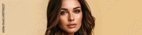 Abstract Portrait of a Successful Middle Eastern Woman in Her 30s with Brown Hair on a Cream Background, Depicting Corporate Success and Professionalism for Themed Articles, Marketing Campaigns, and A