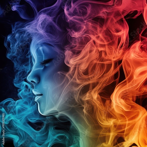 art, abstract, smoke, colours, portrait, beauty, design, creativity, expression, profile, digital, illustration, fantasy, aethereal, silhouette, vibrant, flowing, movement, imagination, surreal, aesthetic, light, shadow, texture, visual, representation, harmony, inspiration, emotion, elegance, dreamlike, fluid, face, artistic, concept, style, allure, captivating, feminine, nature, transformation, energy, colours, depth, softness, atmosphere, phenomena, mystique, vision