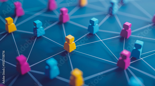 abstract professional business team people innovation connection of line from nail node to node on map background , networking concept