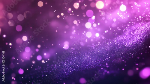 Abstract purple and pink bokeh background with glowing particles.