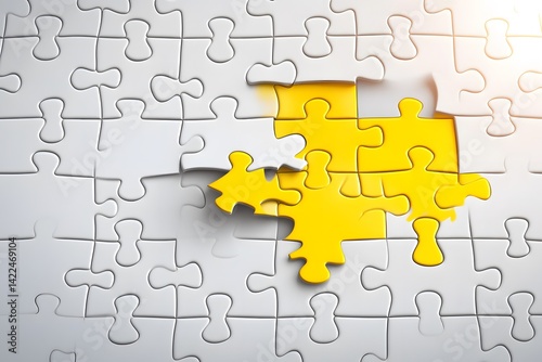 Abstract Puzzle Pieces, Yellow Solution in White Jigsaw