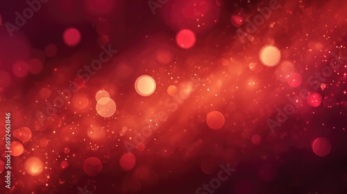 Abstract red festive bokeh background with glowing light orbs and copy space