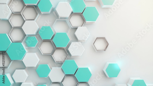 Abstract render of metallic honeycomb pattern in teal shades as background