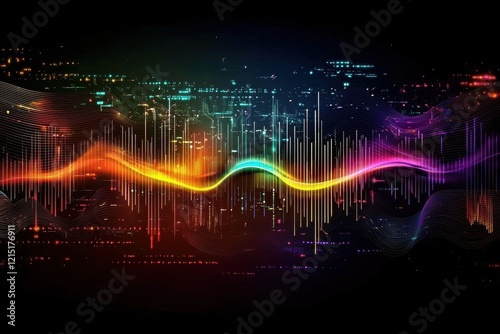 media, signal, dj, element, melody, soundtrack, form, beat, energy, song, level, spectrum, effect, science, stereo, waveform, illustration, pulse, technology, abstract, digital, graphic, track, audio, design, modern, wave, colours, background, volume, musical, equalizer, music, radio, frequency, sound, voice, glow, black, player, vector