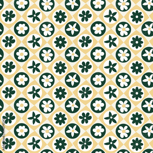 Abstract Retro Florals Geometric Diamond Squares Background Hand Drawn Trendy Minimalist Seamless Vector Pattern Stylish Compatible Colors Perfect for Allover Fabric Print or Wrapping Paper