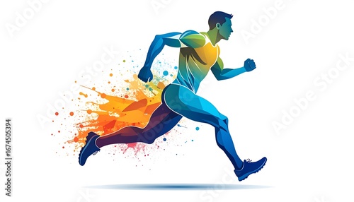 runner, abstract, athletic, colourful, vibrant, motion, dynamic, speed, sport, active, healthy, fitness, silhouette, graphic, design, illustration, male, human, figure, style, shape, line, art, energy, powerful, sprinting, speedy