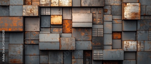 metal, rust, cube, mosaic, texture, background, wall, abstract, grunge, industrial, pattern, design, art, geometric, surface, steel, iron, grey, brown, orange, square, block, overlay, aged, weathered, vintage, retro, oxidized, corroded, construction, material, architecture, modern, contemporary, collage, three-dimensional, rendering, digital
