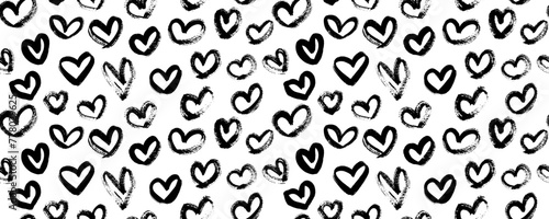 Abstract seamless pattern hearts. Seamless pattern with hand drawn hearts. Hearts painted dry brush. Ink illustration. Ornament for wrapping paper.