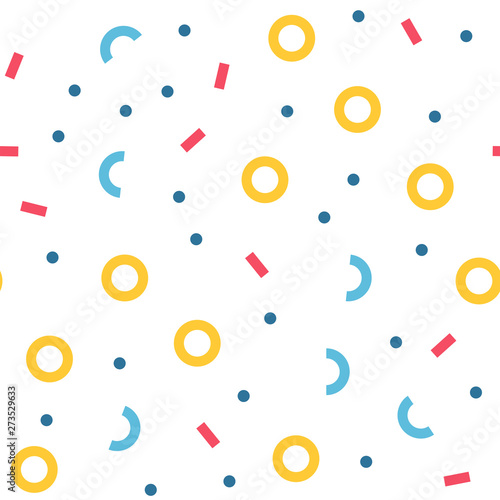 Abstract seamless pattern in geometric style. Texture made of circles dots and rectangles. Vintage style.