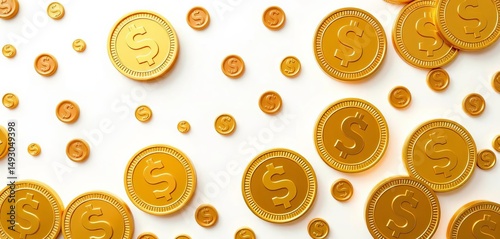 Abstract seamless pattern of coins and money signs; a minimalist white background design, line, income