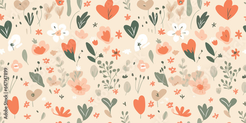 Abstract seamless pattern of hearts and flowers, digital paper, for surface design, fashion prints. Vector illustration for textile, postcard, wrapping paper, poster, background, book, t-shirt.
