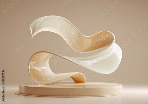 Abstract shapes of cream in the shape of waves on a podium stand, isolated on a pastel background. A mockup for product presentation of cosmetic beauty goods.