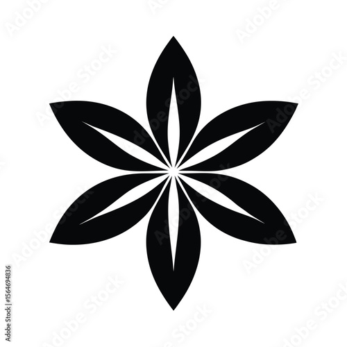 Abstract six petal flower blossom black silhouette vector illustration