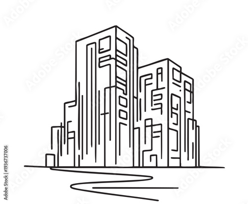 Abstract Sketch - Modern High-rise Buildings Perspective - Vector Illustration