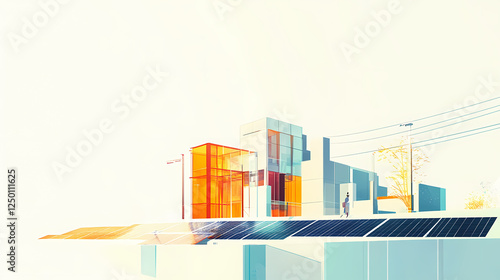 abstract, representation, smart, grid, system, managing, energy, distribution, modern, city, simplified, flat, paper, art, style, clean, white, background, city, illustration