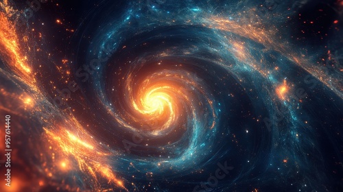 Abstract Spiral Galaxy Nebula with Blue and Orange Colors - Cosmic Background