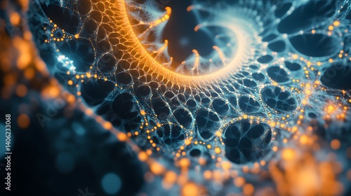 spiral, network, abstract, space, galaxy, cosmos, universe, science, technology, digital, art, design, pattern, texture, colours, light, dark, orange, blue, glowing, dot, line, fractal, complex, beautiful, modern, futuristic, illustration, graphic, symmetry, geometric, structure, patterned, intricate, element, composition, visual, artistic, aesthetic, creative, unique