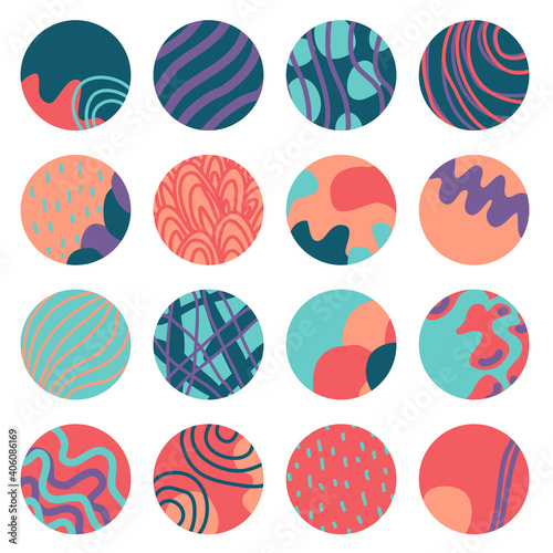 Abstract stories highlight cover. Social media story round icons, art design contemporary popular style. Vector illustration for blogging.