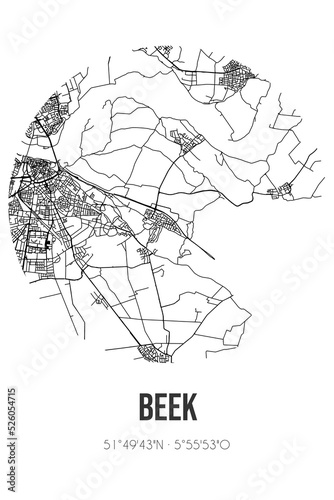 Abstract street map of Beek located in Gelderland municipality of Berg en Dal. City map with lines