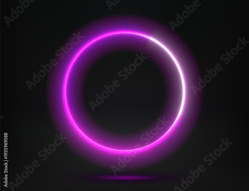 Abstract studio with glowing purple neon circle frame. 3d vector illustration