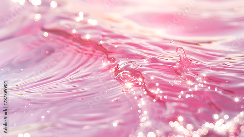 Abstract summer banner background Transparent pink clear water surface texture with ripples splashes and bubbles Water waves in sunlight with copy space Cosmetics moisturizer micellar : Generative AI