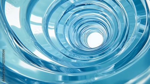 Abstract swirling blue glass tunnel leading to light