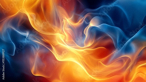 Abstract swirling colors of orange and blue resembling flowing smoke or light.