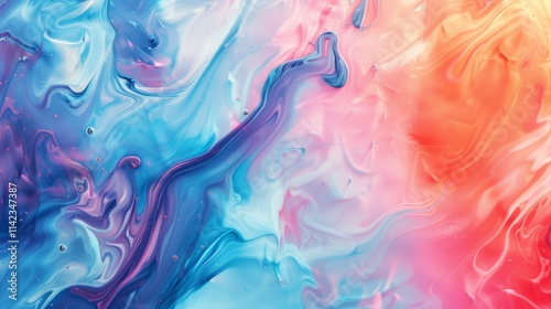 Abstract Swirling Liquid with Blue, Pink, and Orange Hues