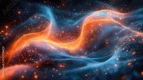 nebula, cosmic, abstract, swirling, particle, orange, blue, space, galaxy, universe, light, energy, fire, smoke, digital, art, texture, design, background, futuristic, science, technology, vibrant, colourful, dynamic, motion, flowing, aethereal, glowing, dust, star, cosmos, exploration, astronomy, planet, celestial, plasma, pattern